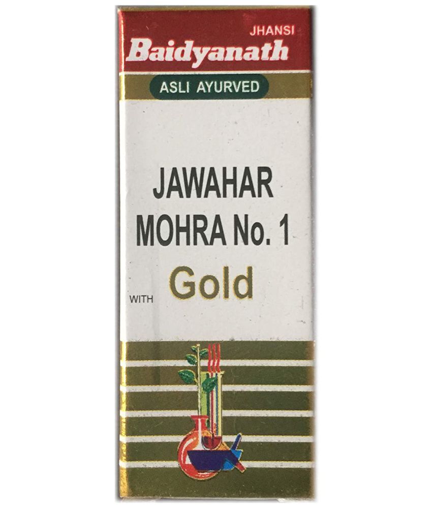 - Tablets of Baidyanath Jawahar Mohra no. 1 with gold are available. It’s a great drug for treating illnesses of the brain and the heart. It is most frequently prescribed by ayurvedic doctors in northern India. Efficacious in alleviating stress and depressive symptoms. Teaches Tachycardia to go away. A wide range of cardiovascular conditions, including heart enlargement (Cardiomegaly), heart palpitations, chest pain and cardiomyopathy, are treated. Eliminates conditions such as madness and epilepsy. In schizophrenia treatment, it aids Relieves apnea and insomnia. Women with menorrhagia will find this useful. Concentration, memory loss, and senile dementia in the elderly can all benefit from using this supplement. The elixir acts as a calming agent. Tridosha